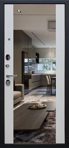 Надежная входная Дверь Вектор с зеркалом премиум класса по цене 49 113 руб. Большая толщина стали защитит от проникновения в ваш дом, квартиру или коттедж. Используется очень качественная фурнитура: замки, цилиндры, ручки, защелки. Покрытие и отделка двери изготовлено под внимательным контролем производителя. Дверь имеет долгий срок службы и гарантию.