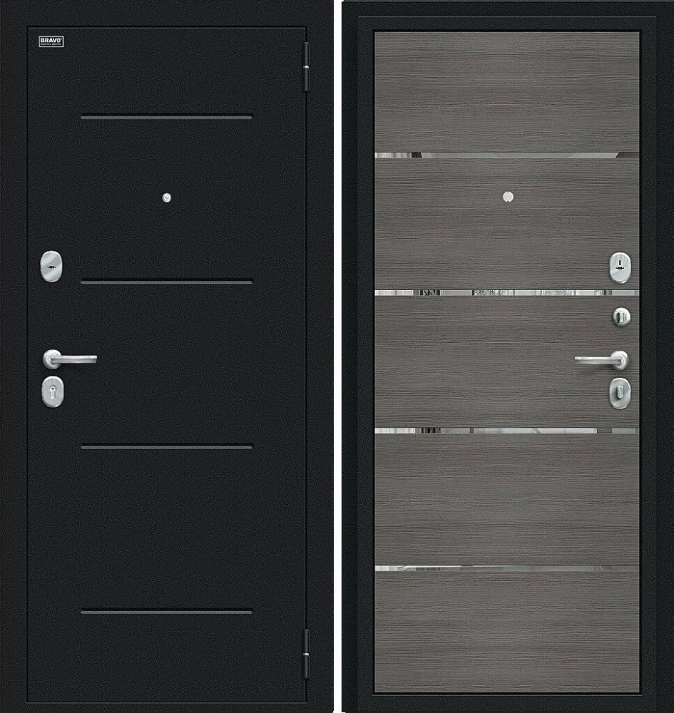 Надежная входная Дверь Браво Лайн Букле черное/Grey Melinga премиум класса по цене 30 033 руб. Большая толщина стали защитит от проникновения в ваш дом, квартиру или коттедж. Используется очень качественная фурнитура: замки, цилиндры, ручки, защелки. Покрытие и отделка двери изготовлено под внимательным контролем производителя. Дверь имеет долгий срок службы и гарантию.