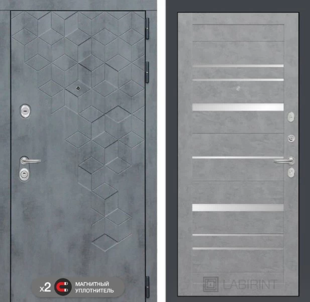 Дизайнерская входная Дверь Бетон класса Люкс с несколькими листами стали, звукоизоляцией и теплоизоляцией. Утепленный короб и полотно защитят от сквозняков и шумов. Модель не только надежная, комфортная, защищенная и высочайшего качества, но и очень красивая! Будет отлично сочетаться с интерьером дома, квартиры или офиса. Сейчас действует выгодное предложение по цене: 54 063 руб.